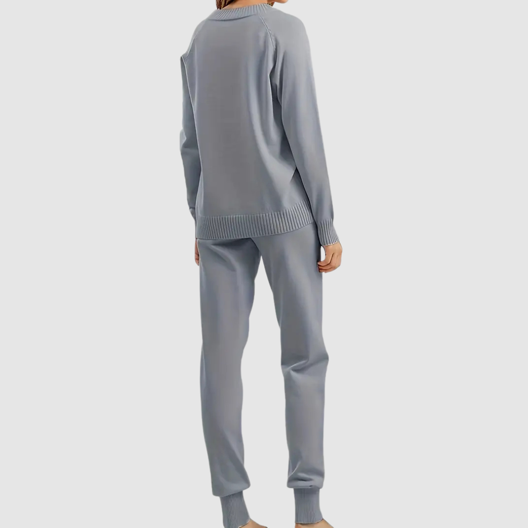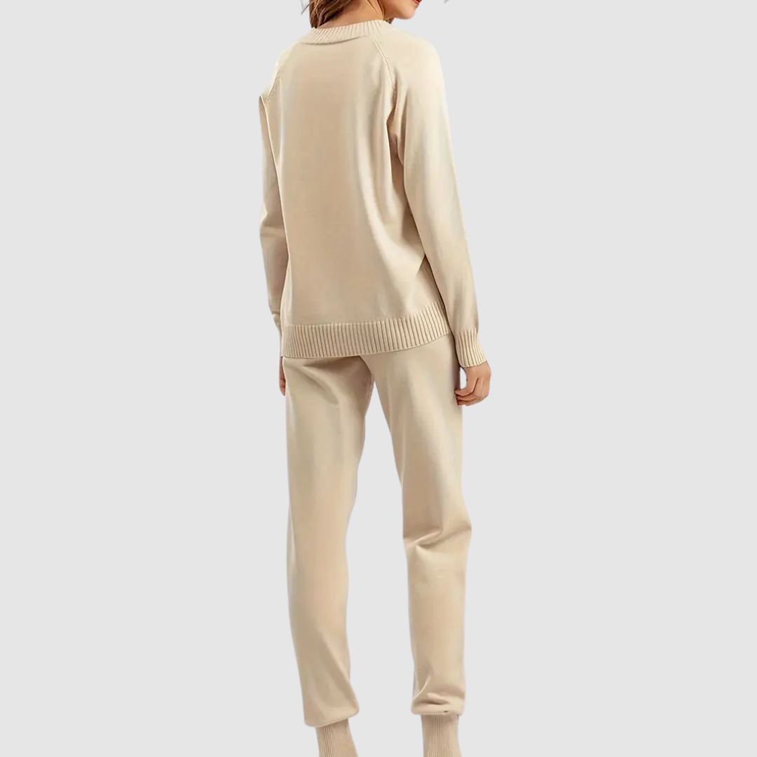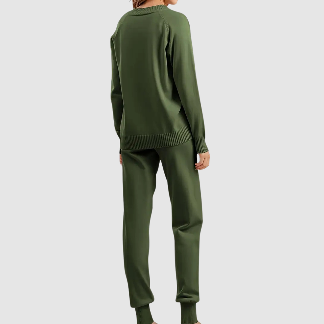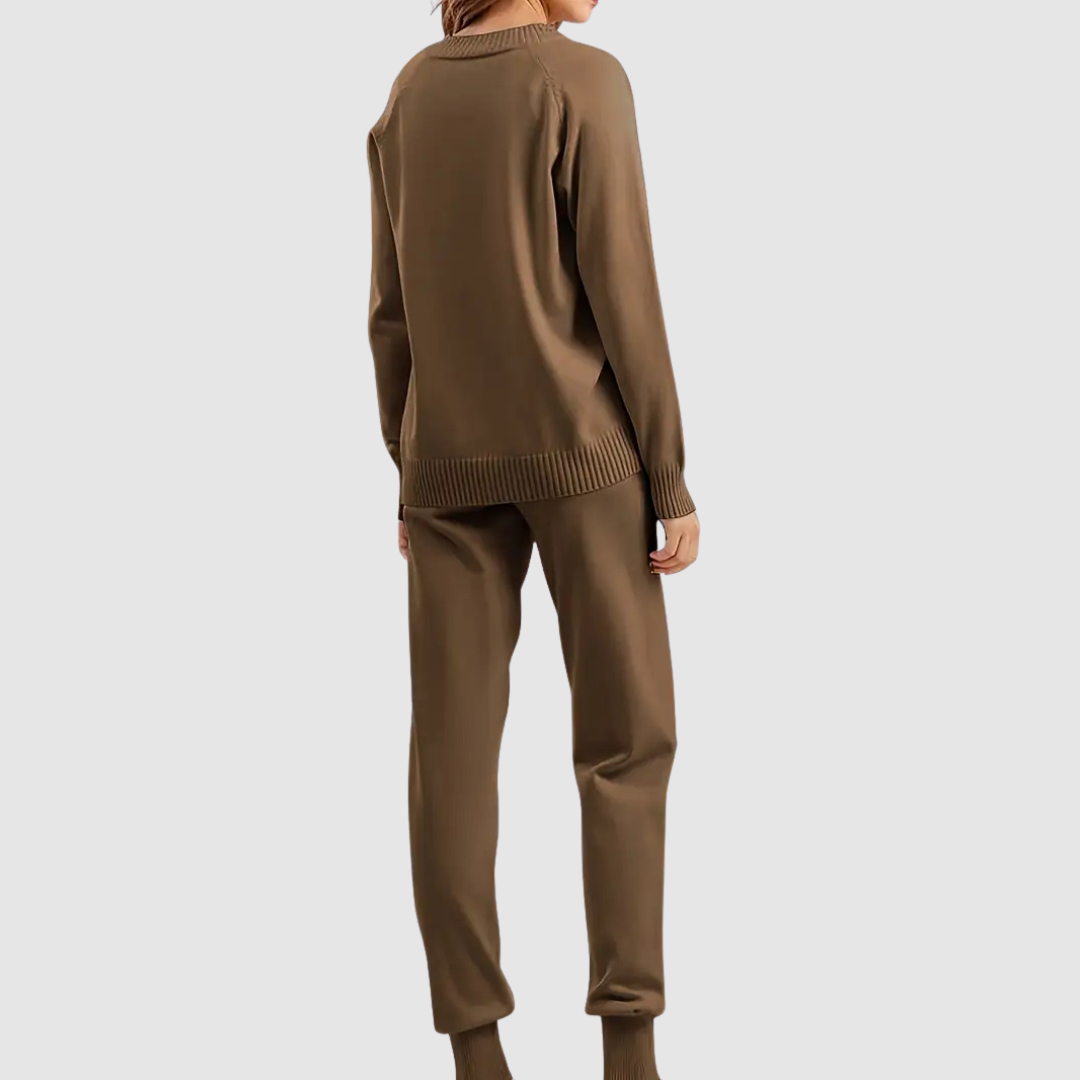 Tento komplet spojuje pohodlí a styl v jednom – svetr s výstřihem do V a volné kalhoty s elastickým pasem tvoří dokonalou kombinaci pro domácí pohodu i ležérní každodenní outfit. Je navržen tak, aby poskytoval maximální komfort bez kompromisu na eleganci.